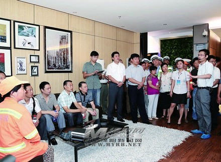 竣工仪式结束后,罗强、林书成等市领导与参与数字家庭体验屋规划设计、工程实施、运行管理的部分干部职工和国家、省、市劳动模范,教师、交警、环卫工人、社区干部、青少年代表,国家、省、市新闻媒体记者一道,参观了数字家庭体验屋。罗强、林书成希望相关单位继续深化、细化、完善陈展方案,在相关技术与产品的集成、整合上下功夫,促进科技与生活的融合,敢于先行先试,做好宣传发动,尽快由数字家庭体验屋的展示、体验推广到智能小区,抓紧制定相关技术和产品标准,通过组建专业公司,推进相关产业发展。
