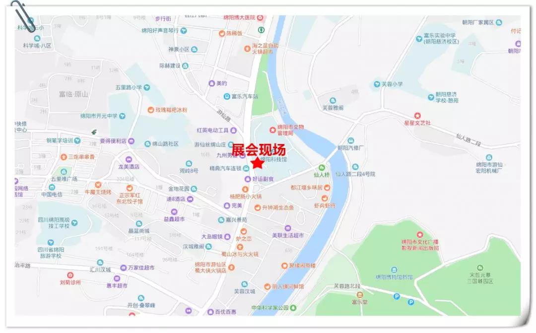 驾车路线:按照上图所示位置导航绵阳科技馆即可。