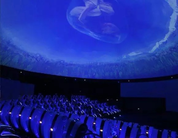 我们的这套系统主要设备从美国进口,12米全球形投影荧幕、6组Digistar 3 crt投影系统、5.1声道数字环绕音响,立体音响和画面效果令人震撼,观看这种电影能使我们充分体验身临其境的感觉。